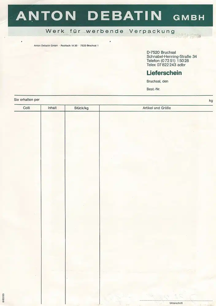 Alors qu’après la deuxième guerre mondiale, les grilles de conception en Allemagne sont principalement marquées par la typographie Bauhaus (form follows function), que la communication d’entreprise (corporate design, publicité, RP) des grands groupes est de plus en plus développée et mise en œuvre par des graphistes et des agences de publicité et que dans les années 60 / 70, le “New York Style” arrive en Allemagne et permet des compositions totalement nouvelles et non conventionnelles d’images et de typographie, de forme et de contenu, ce n’est qu’en 1982 que DEBATIN fait ses adieux au style “fait main”.