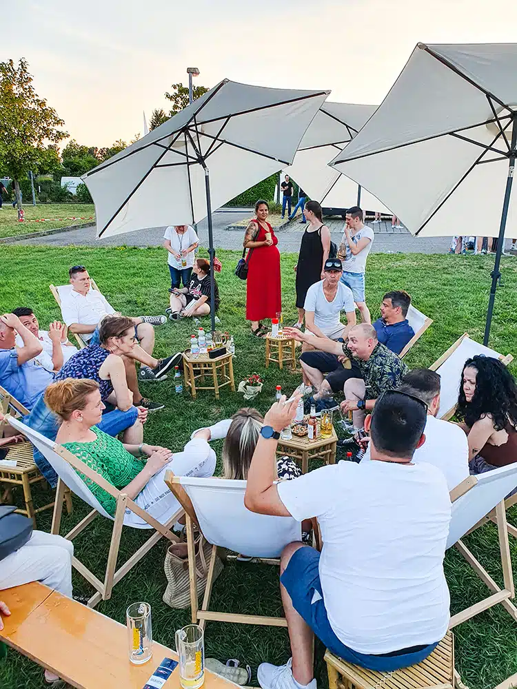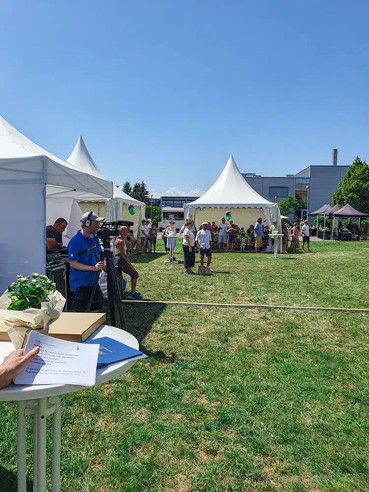 Dans une atmosphère détendue, les participants ont eu l’occasion de se plonger dans l’histoire de l’entreprise, d’échanger et de passer un bon moment ensemble. La restauration était assurée, tout comme la musique en live qui a donné envie de danser, des photos souvenirs aussi, ainsi qu’un une visite de la production – ou encore un petit rafraîchissement au bord du système d’arrosage 😉.