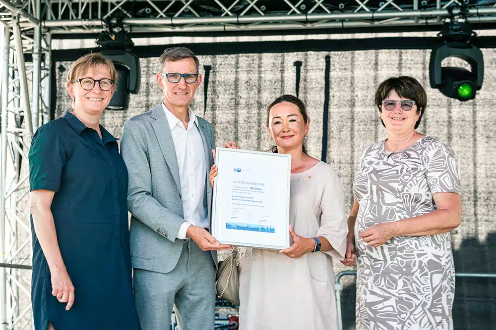 Bien entendu, une partie officielle était aussi de rigueur, mais elle fut tout aussi divertissante que le reste de la journée. Alors que les discours de Veronika Debatin et de Thomas Rose étaient spontanément accompagnés d’applaudissements intermittents, la maire de Karlsruhe, Cornelia Petzold-Schick, a remercié dans son discours la fidélité au site et l’engagement de DEBATIN en faveur du développement durable, avant que la référente de la CCI, Linda Jeromin, ne se charge de remettre le certificat de jubilé et de souligner l’étroite collaboration entre DEBATIN et la CCI de Karlsruhe.